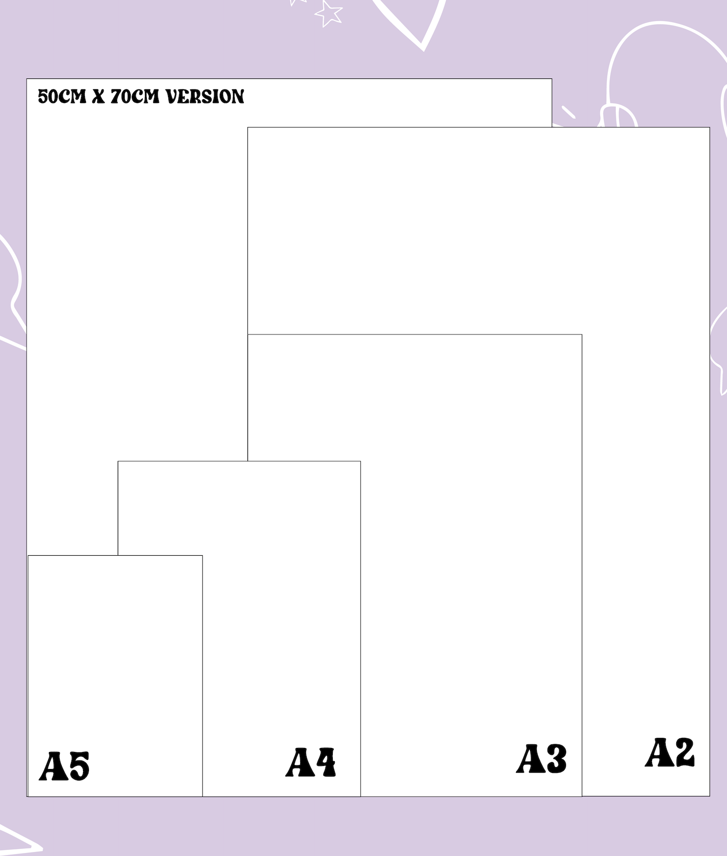 50x70cm Printed on a 200gsm glossshine paper (Please note price alteration due to Supplier cost changes. thank you)