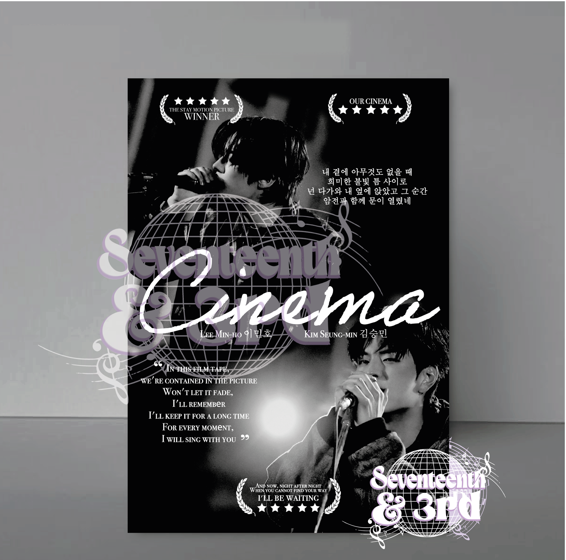 Inspired by "Cinema" by Lee Know and Seungmin. This poster has Lyric hints and Movie poster twist, to give that movie magic look.