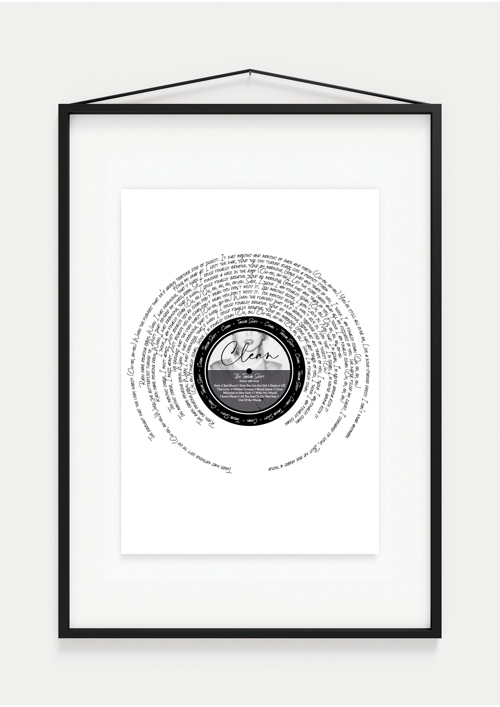 Clean (1998) T Swift Inspired Lyric Print - A4 print scale